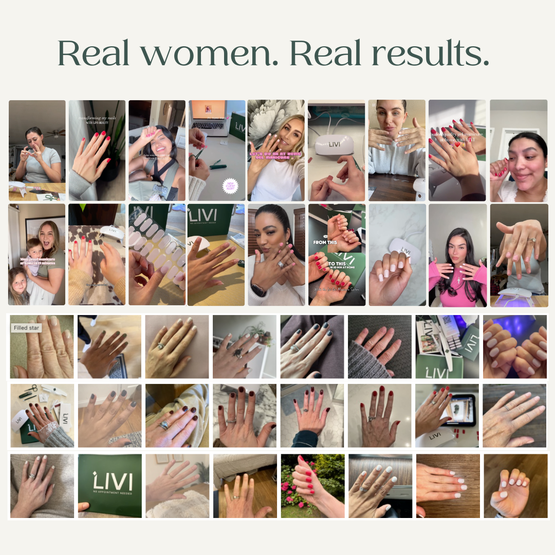 Livi delivers salon-quality gel manicures—without the salon. Our semi-cured gel nail strips apply like a sticker, cure under a UV lamp, and wear for 10+ days. No polish, no dry time, no damage. It’s the clean, non-toxic, at-home polish alternative that actually works. Whether you're a minimalist or a mani maximalist, Livi makes nails easy, fast, and kind to your hands.