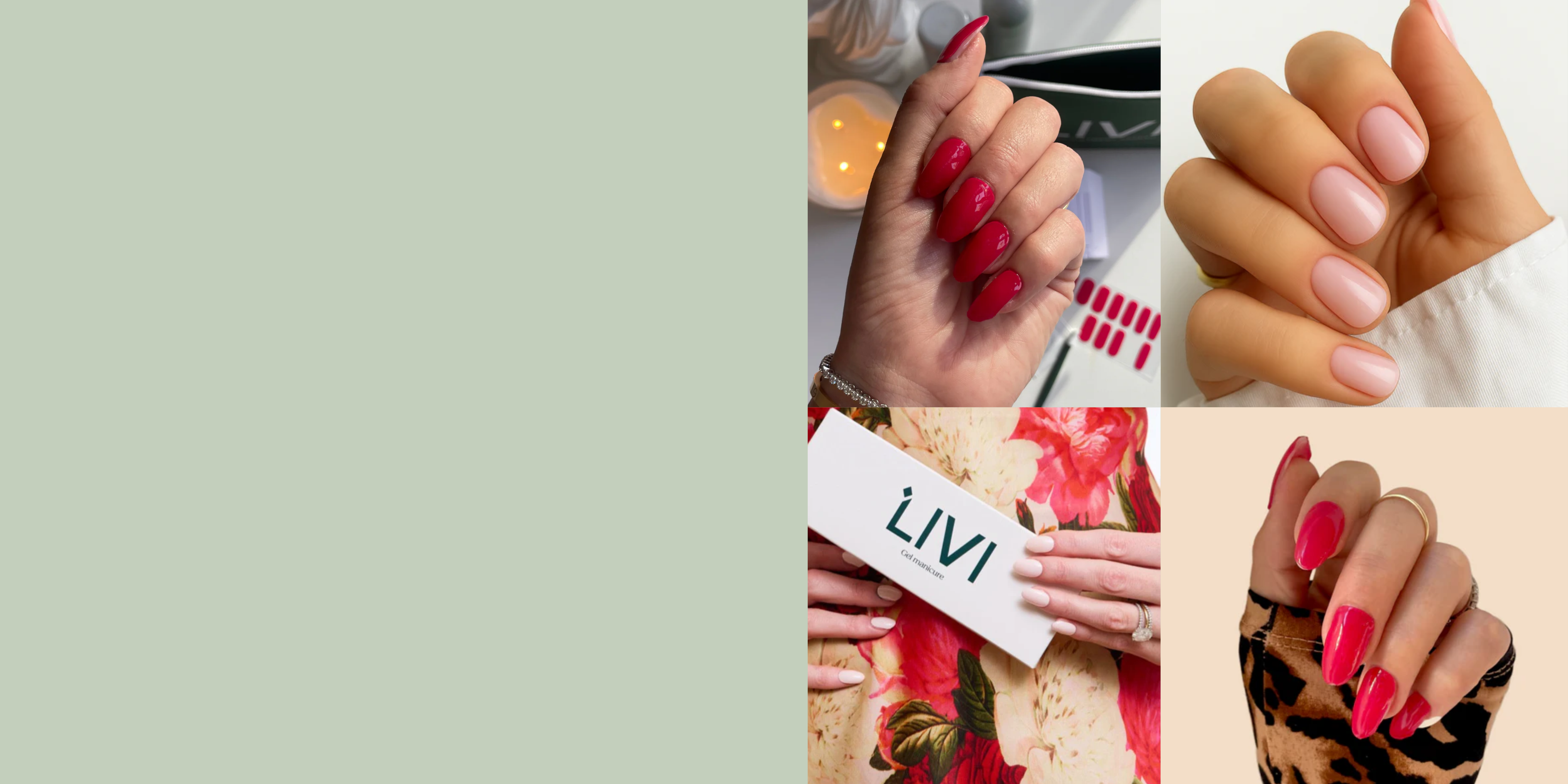 Livi delivers salon-quality gel manicures—without the salon. Our semi-cured gel nail strips apply like a sticker, cure under a UV lamp, and wear for 10+ days. No polish, no dry time, no damage. It’s the clean, non-toxic, at-home polish alternative that actually works. Whether you're a minimalist or a mani maximalist, Livi makes nails easy, fast, and kind to your hands.