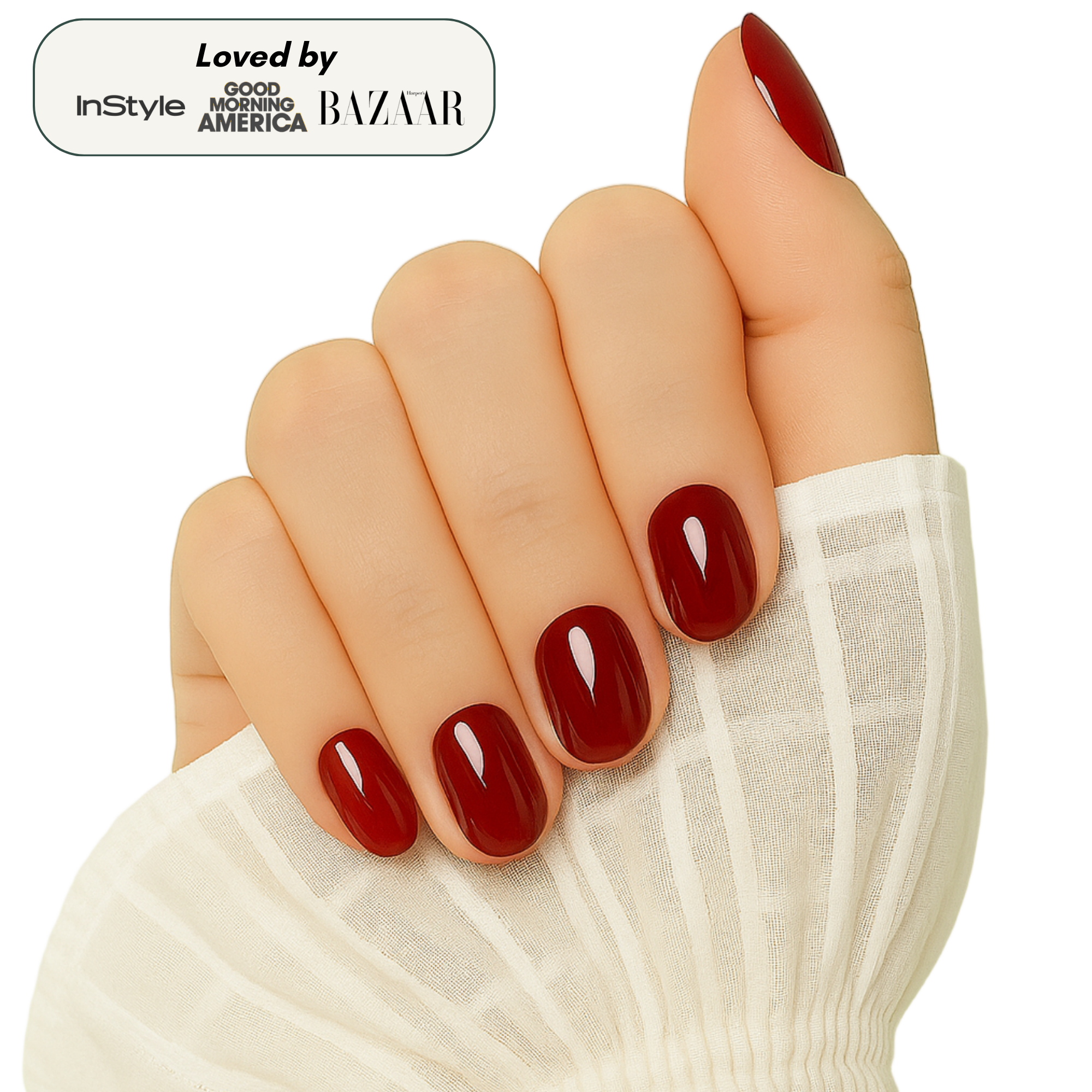 Gel-strong, glossy nails that last up to 14 days.