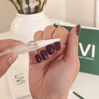 Generously apply the cuticle oil around your nails, focusing on the edges where the gel meets your natural nail. Don’t be shy—the more oil, the better.